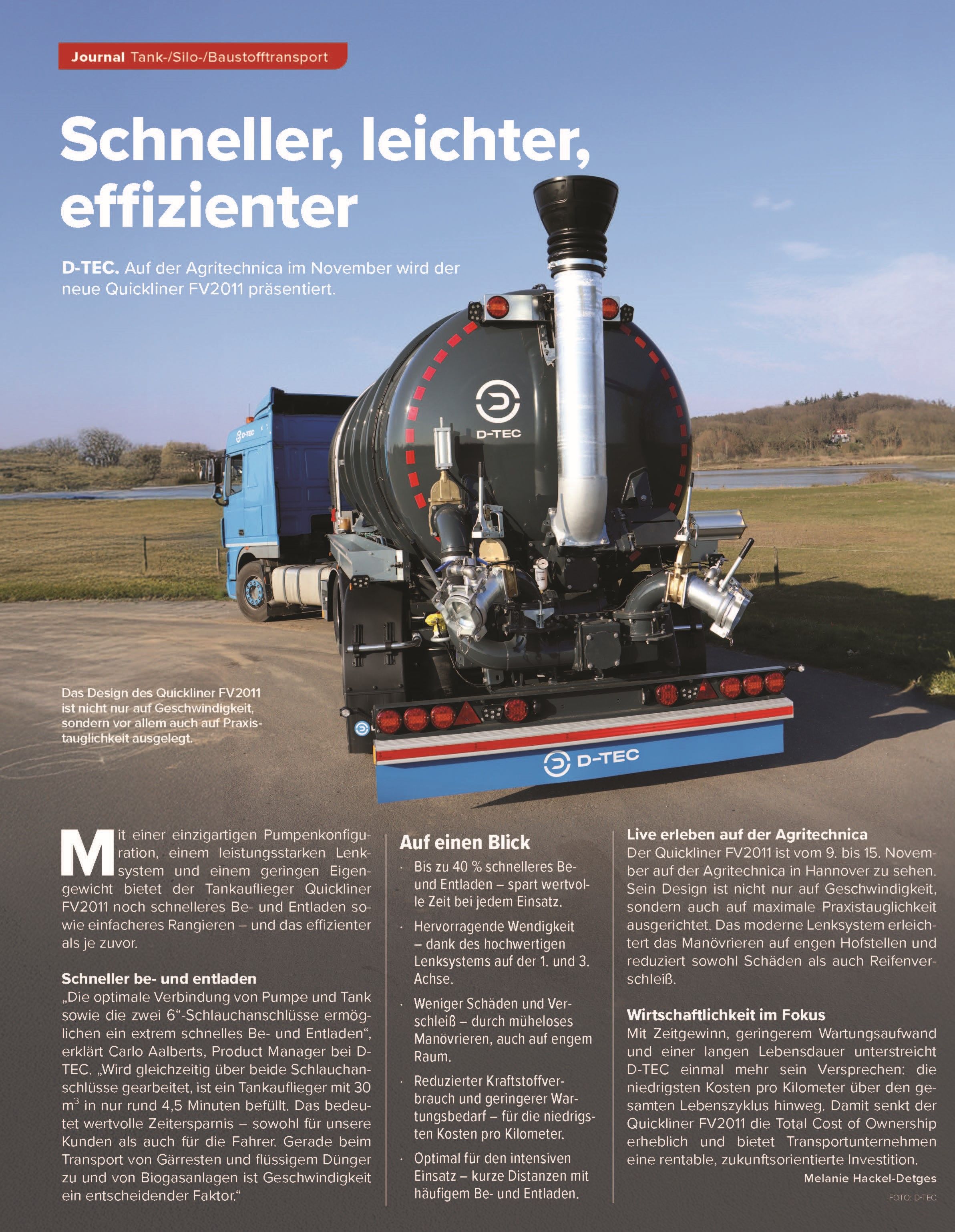 D-TEC präsentiert den Tankauflieger Quickliner FV2011