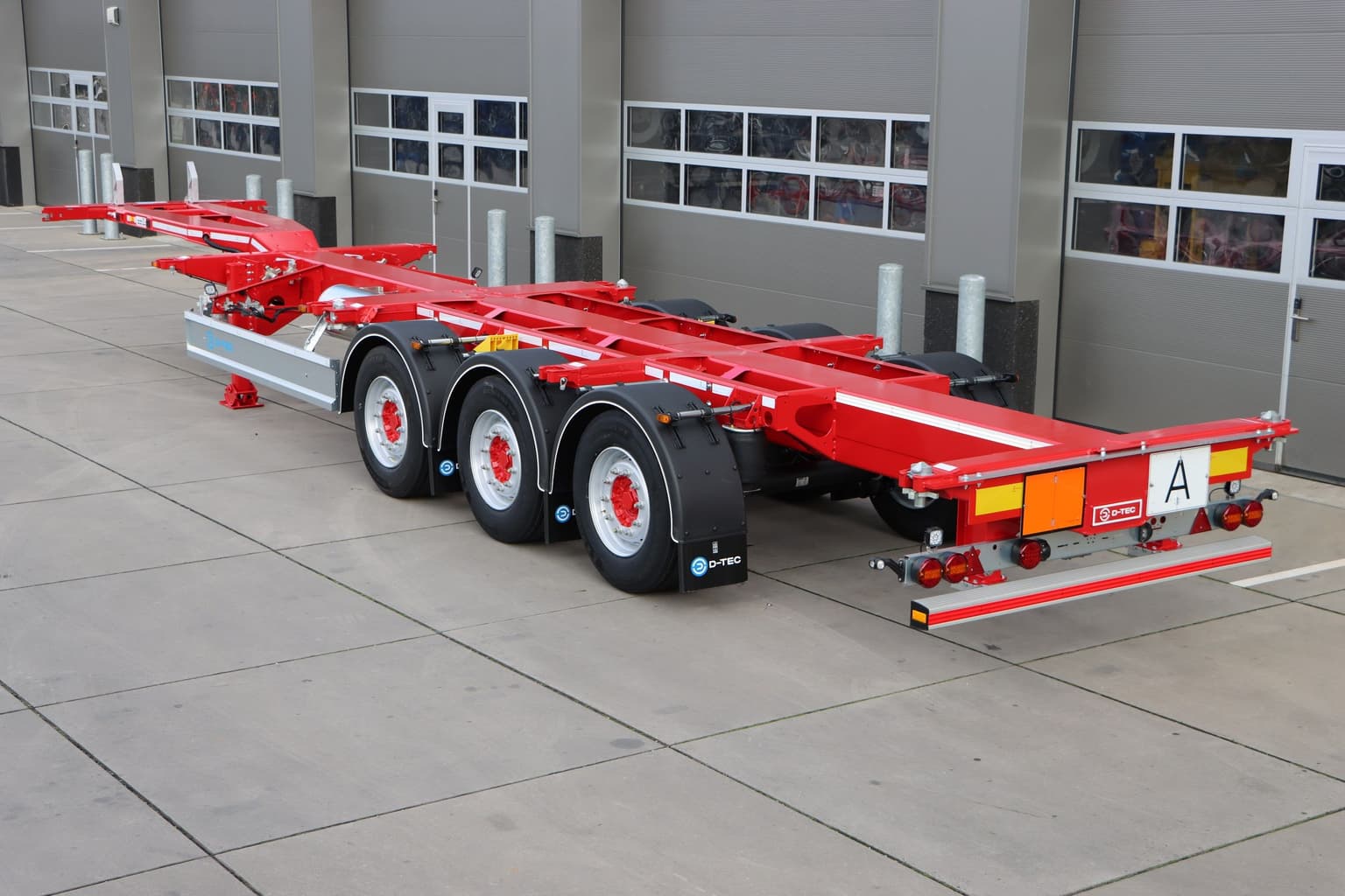 De D-TEC CC-40-3-S met gooseneck is ideaal voor het vervoer van 40ft high Cube containers, waarbij het lage ontwerp ervoor zorgt dat u onder de 4 meter hoogte blijft. Dankzij extra opties is het nu mogelijk om naast 40ft containers ook een grote verscheidenheid aan andere containermaten te vervoeren, zelfs tot en met 45ft.
