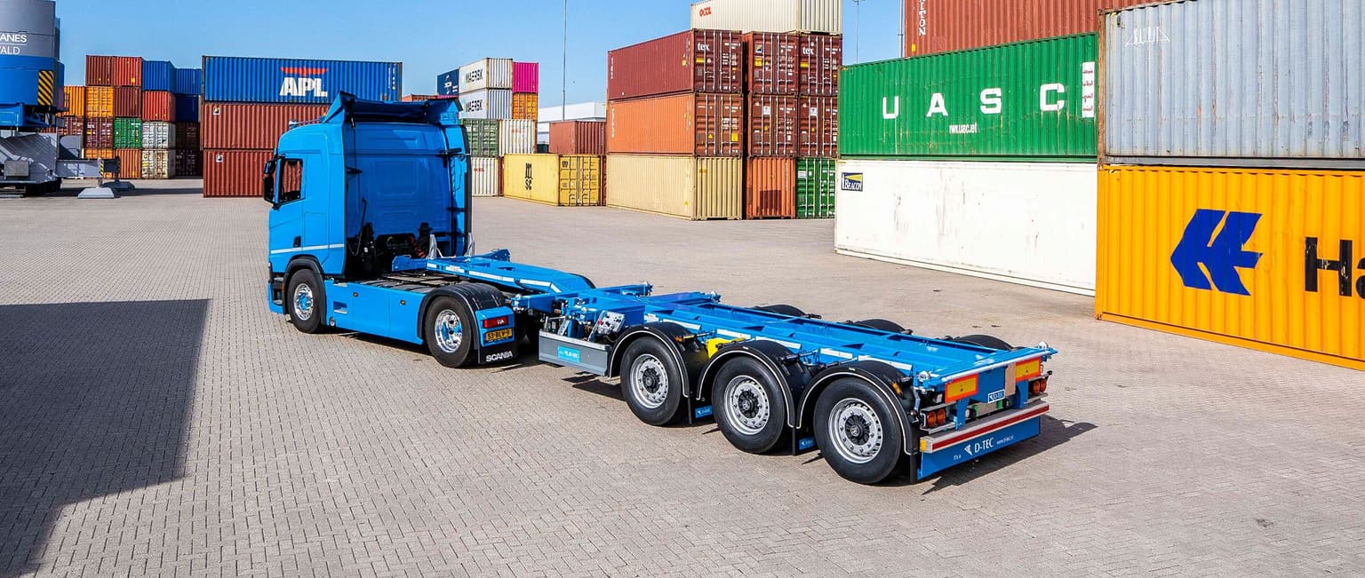 De D-TEC Flexitrailer LS is onze meest gekozen containerchassis omdat het geschikt is voor alle ISO-containers, met een optimale gewichtsverdeling onder alle omstandigheden. Dit zorgt voor een ideale balans in zowel schoteldruk als aslast.
